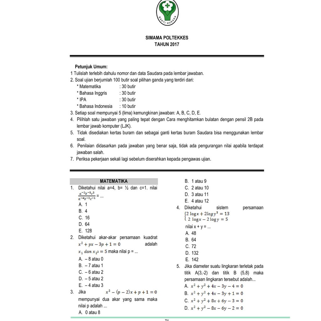 Download Soal Poltekkes 2012 2017 Pdf from 2.bp.blogspot.com Maybe you would like to learn more about one of these? We did not find results for: Check spelling or type a new query.